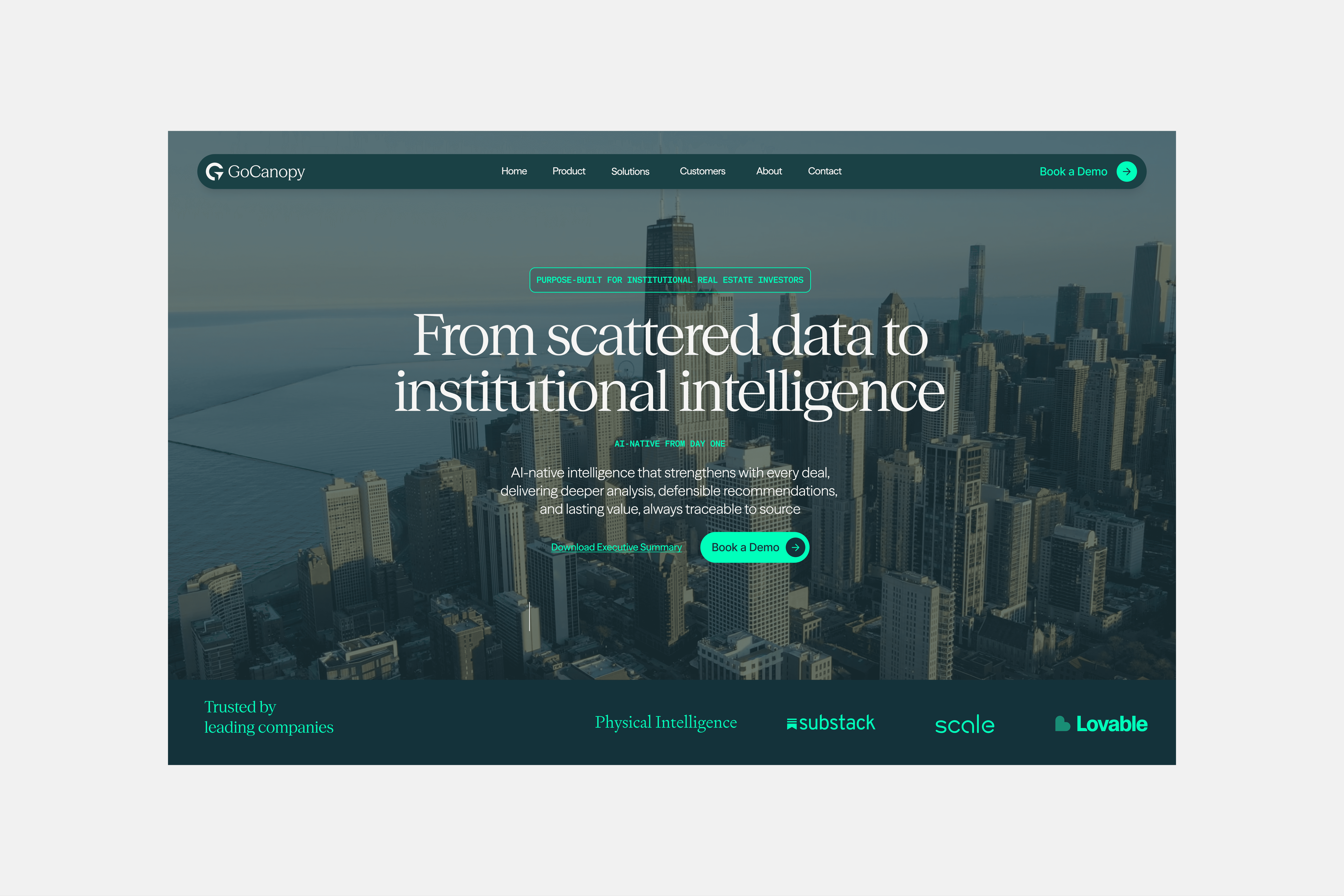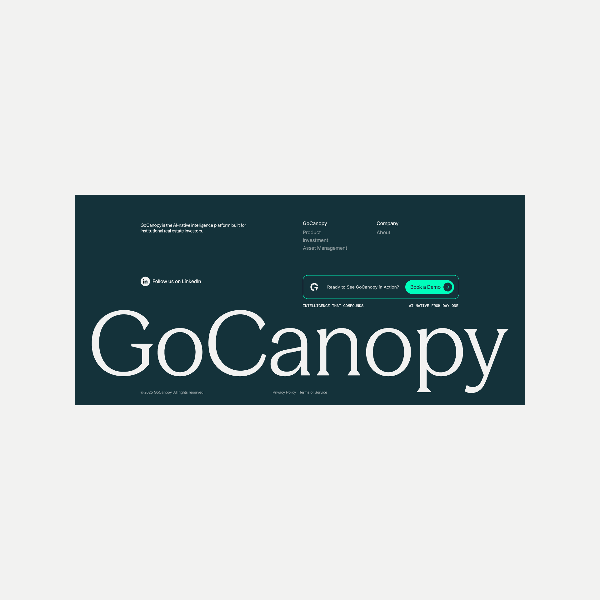 The existing brand identity did not reflect the target customer. As GoCanopy shifted toward industrial and institutional real estate investors, the brand needed to signal trust, credibility, and enterprise readiness while appealing to a high-end, luxury-adjacent audience.